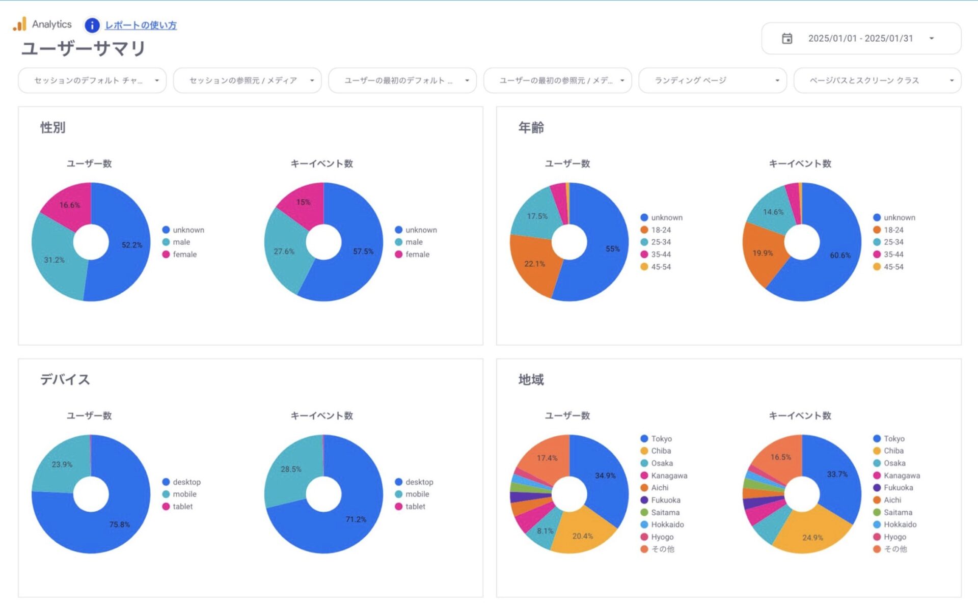 アクセス数、流入経路、コンバージョン率、ユーザー行動など、重要な指標を分かりやすく可視化。数字の羅列ではなく「何が起きているのか」「次に何をすべきか」が分かるレポートをご共有すると共に、定例ミーティングを実施します。