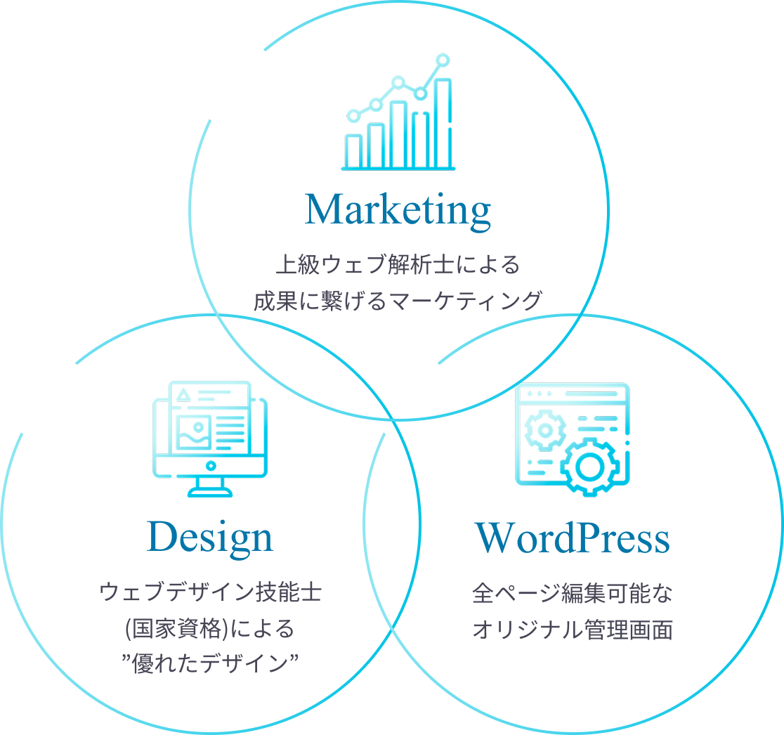 「上級ウェブ解析士」というデータ分析に関する上級専門資格を持つWebマーケターにより、データ分析に基づいたSEO対策やWeb広告運用を行い、サイトや経営の課題に対してデジタルマーケティングの強化を行います。