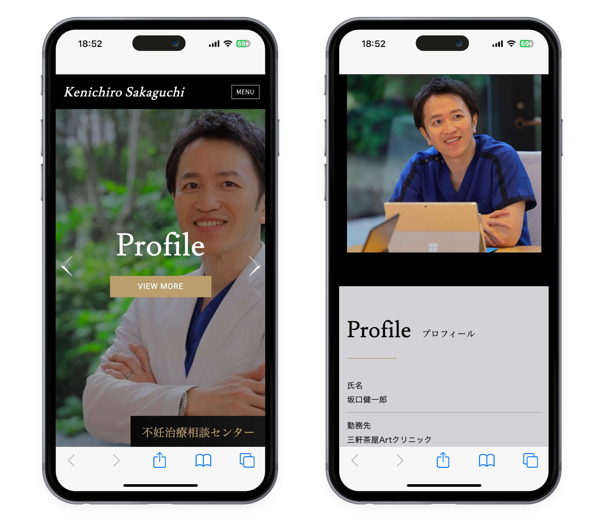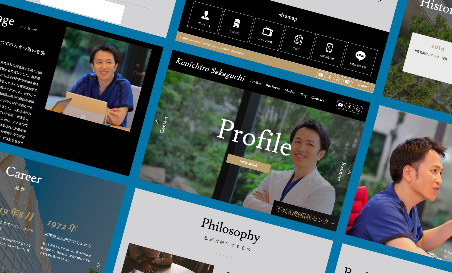 共同出資した複数の医師に向け、同じ構成・仕様でのテンプレートサイトの制作を要望され、坂口健一郎医師だけでなく、複数のパーソナルサイトを制作しました。