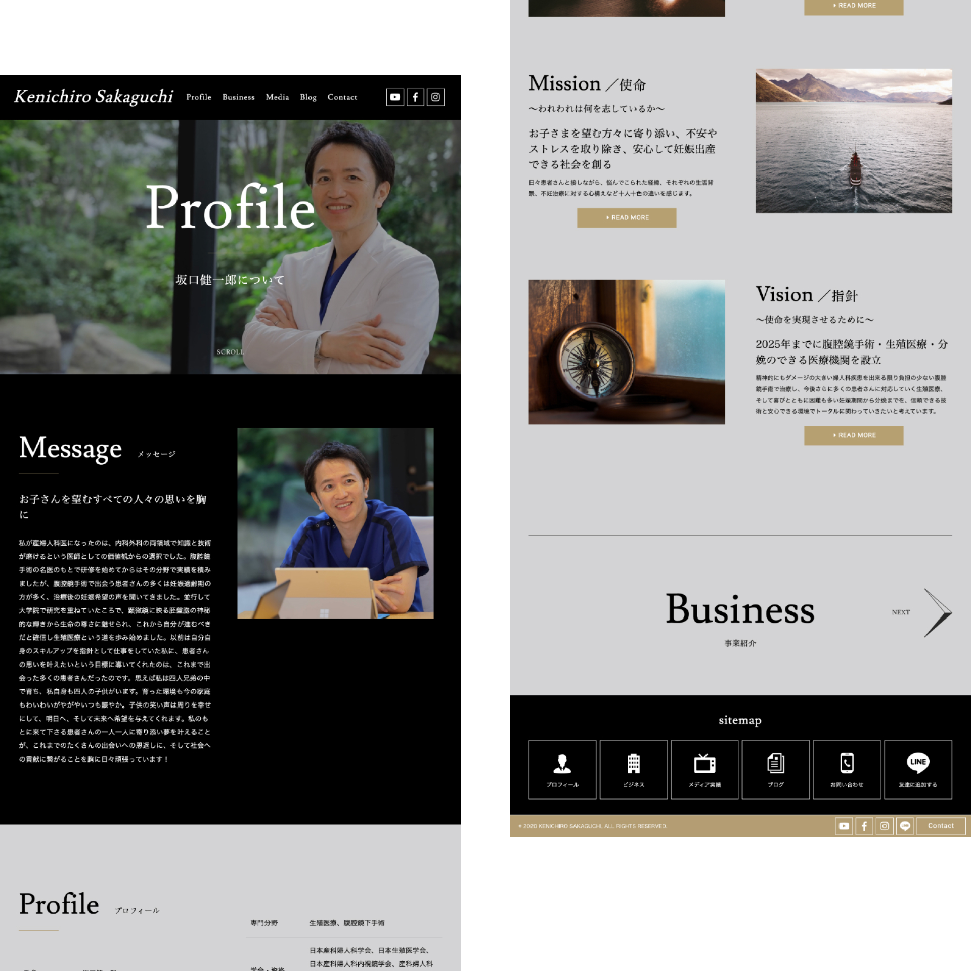 コーポレートサイトは会社を紹介するサイトですが、経営者や医師など、個人の紹介に特化した"パーソナルサイト"の制作のご依頼でした。
